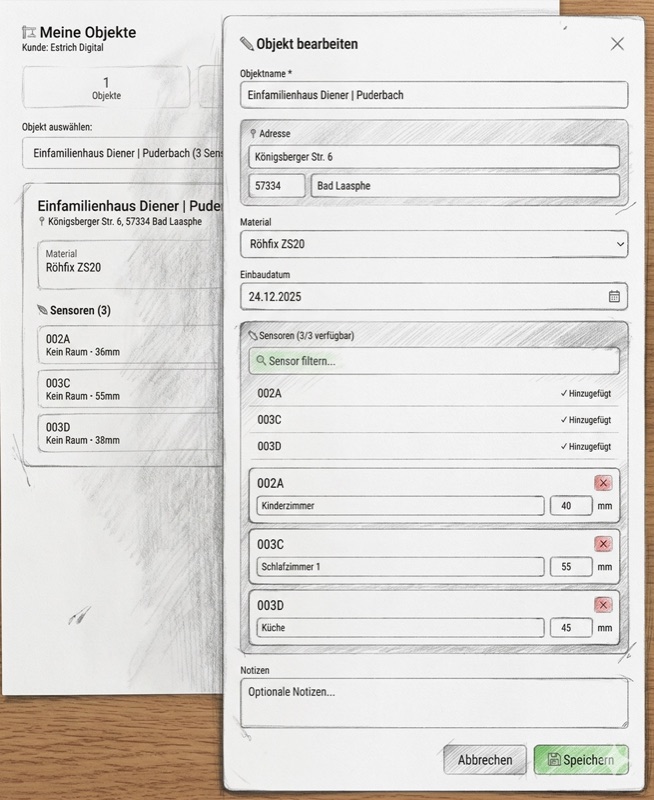 Verbringen Sie auch unnötige Fahrten zu Baustellen nur um dann zu sehen, dass der Estrichboden noch nicht trocken ist? Stellt sich später heraus, dass falsch gelüftet wurde? Der Sensor von Estrich Digital übernimmt diese Aufgaben und hilft aktiv bei der effizienten Baustellenplanung.